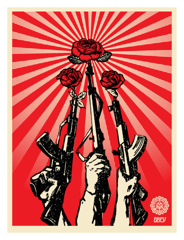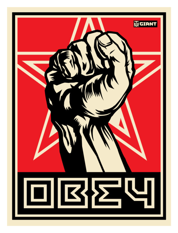 Fairey’s stickers, guerilla street art presence, and public murals are recognizable globally. He was the subject of the feature-length Hulu documentary “Obey Giant: The Art and Dissent of Shepard Fairey,” released in 2017. His works are in the permanent collections of the Boston Institute of Contemporary Art, Museum of Modern Art (MoMA), the Museum of Contemporary Art (MOCA) in Los Angeles, the Museum of Fine Arts Boston, the San Francisco Museum of Modern Art, the Smithsonian’s National Portrait Gallery, the Victoria and Albert Museum, and many others. He sits on the board of Brave New Films, People for the American Way, and the Rhode Island School of Design. His art and career have been the focus of several published books including the “OBEY: Supply and Demand” and “Covert/Overt: The Under/Overground Art of Shepard Fairey” both published by Rizzoli.