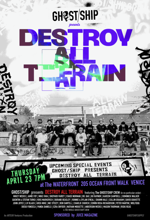 GHOST/SHIP “DESTROY ALL TERRAIN” is directed by Andy Howell, and features Mikey Weeks, Jamie Foy, Mike Fava, Shepard Fairey, Chase Norman, Dr. Dax, Bo Raynor, Kareem Campbell, Dominick Walker, Quentin & Stefan Turko, Kris Markovich, Durand Beasley, Ronnie & Dylan O’neal, Shawn Hale, Collin Graham, David Gravette, John Joyce, Liv Black, Greg Mike, Nic Steezy, Ben Sawtell, Charlie Church, Edwin Rosa Richardson, Peter Martin, Wolfdog, Diego Fonseca, Panda Daniels, Ezra Snyder, Nathan Midgette, Anderson Weeks, Mason Thurman, Riski Reas and the whole GHOST/SHIP family.