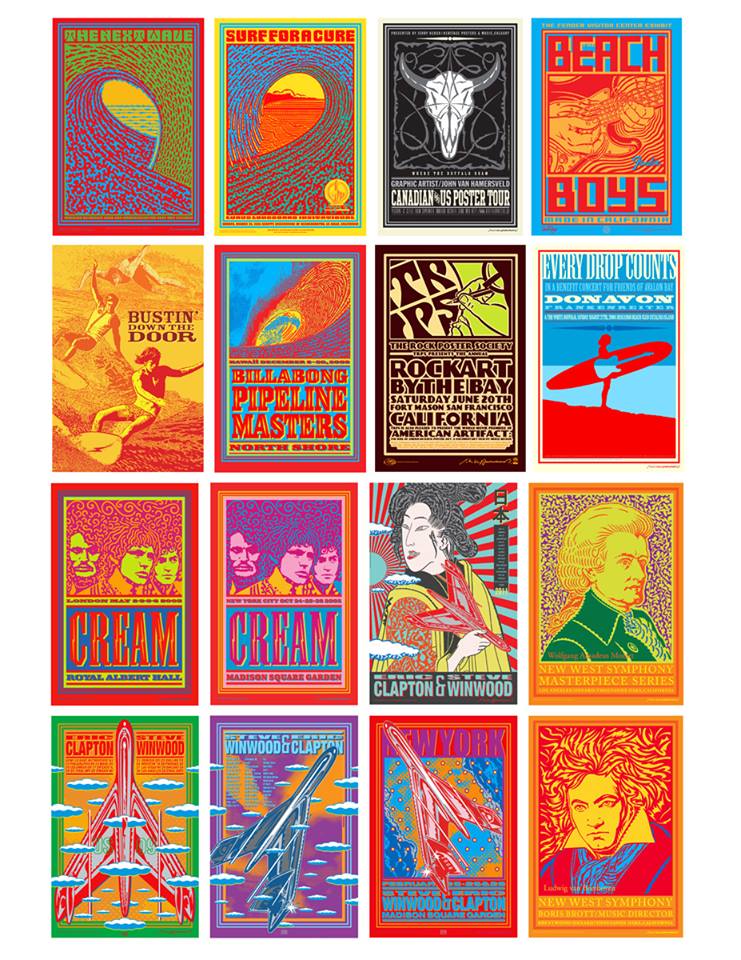 Tourje also orchestrated a partnership with Larry Bertlemann and Van Hamersveld for a Bertlemann graphic tribute, as John Van Hamersveld and Larry Bertlemann were both inducted into the Surfing Walk of Fame this summer.