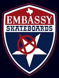 Embassy Skateboards is the brainchild of skateboarding legend John “TEX” Gibson and Bark Hard bandmate Lee Leal. John was the first Texas pro skateboarder and his career expands four decades. In 2009, Tex and Lee launched Embassy to continue the legacy. Embassy riders include Ken Fillion, Craig Johnson, Todd Prince, Henry Gutierrez, Dave Duncan, Christian Fletcher, Bill Danforth, Pat Black, Allen Midgette, Rodney Mead and Dave Reul, Ivan Rodriguez, Taylor Bray, Cody G, Jimmy Seol, Bombette Martin, Kat Folsom, Collin Graham, Nathan Midgette, Ronnie O’Neal, Jason Gutierrez and Ronan Livingston. From old-school to new-school, Embassy keeps the core of skateboarding alive. Ride with Pride! Learn more at https://embassyskateboards.com.