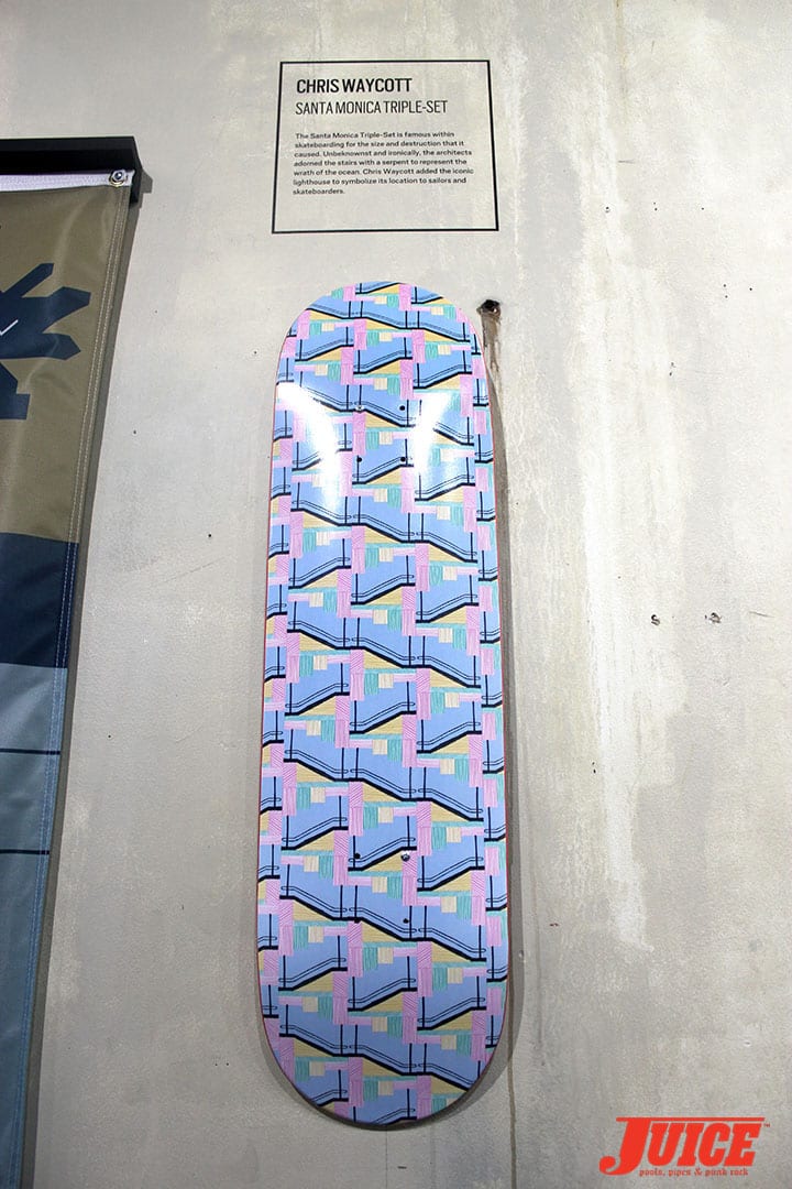 Artwork for this ingenious exhibition include Nate Hooper’s tribute to the recently liberated Santa Monica Courthouse, Nick Zegel’s compliment to the legendary Pink Motel Pool, Andy Jenkins memorial to the Wilshire handrail, Andy Mueller’s nod to Hollywood High, Chris Waycott’s acknowledgement of the Santa Monica triple set, Eric Anthony’s accolades to Gardner, Carlos Gutierrez’ recognition of Lockwood and Jeremy Carnahan’s tribute to L.A. High.